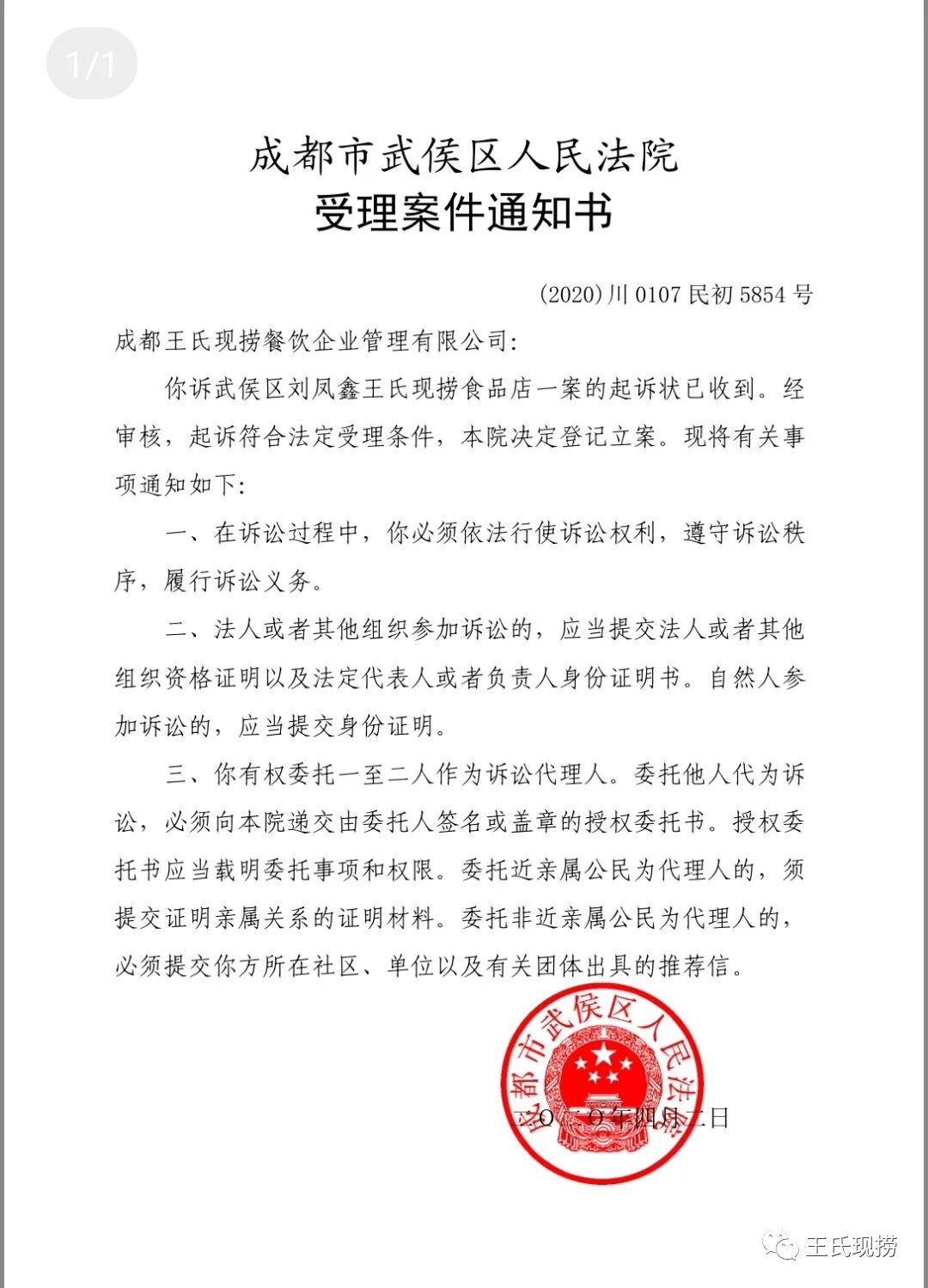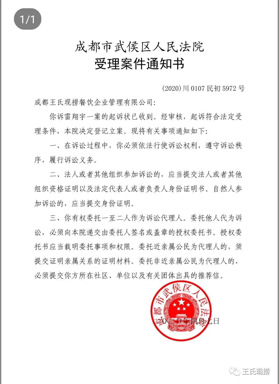 ——成都王氏現撈餐飲企業管理有限公司